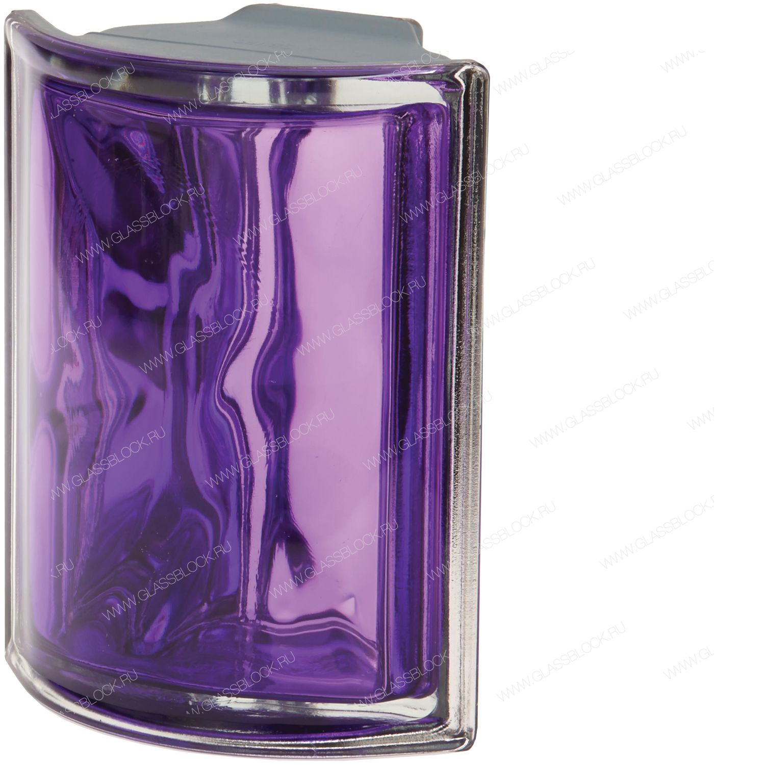 Гладкий угловой окрашенный внутри металлизированный аметистовый стеклоблок без узора.