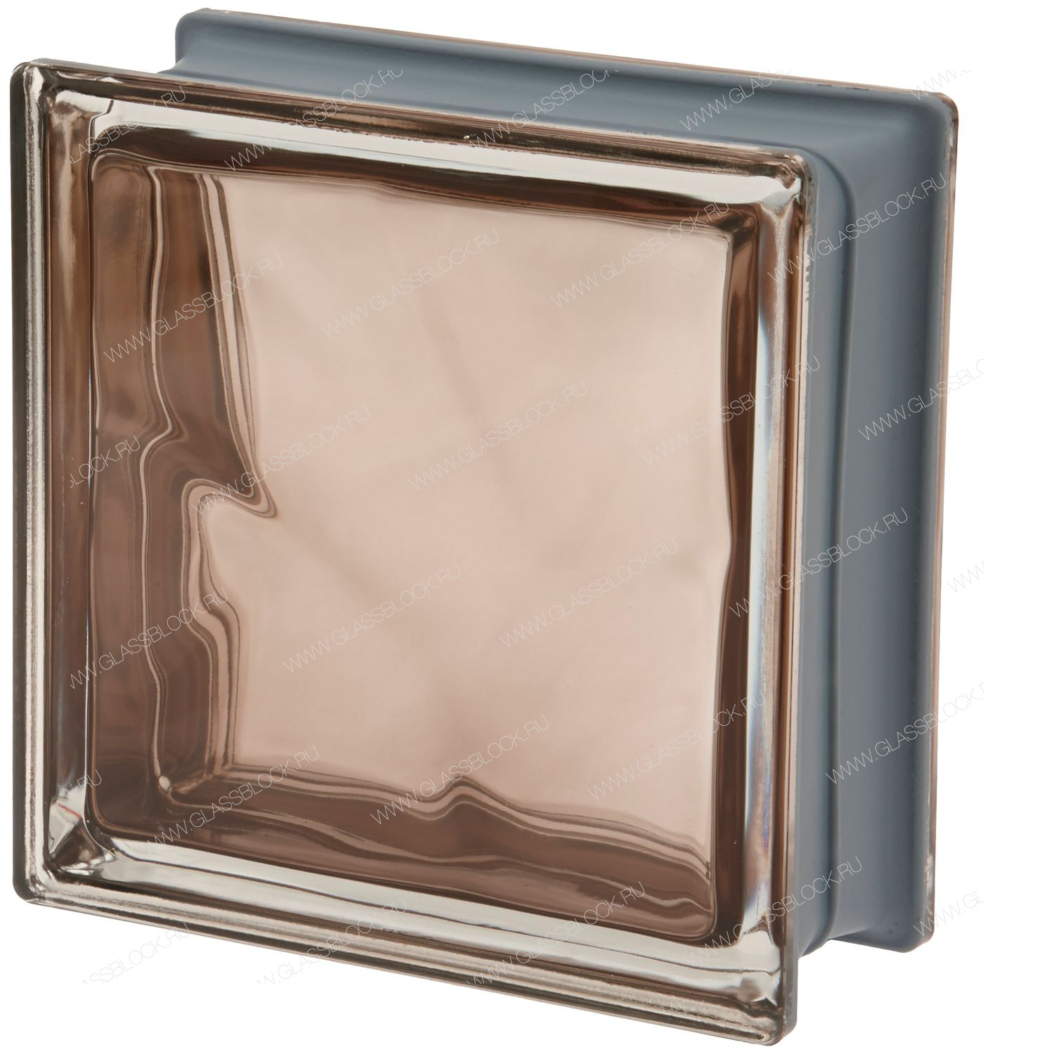 Гладкий окрашенный внутри металлизированный коричневый стеклоблок без узора.